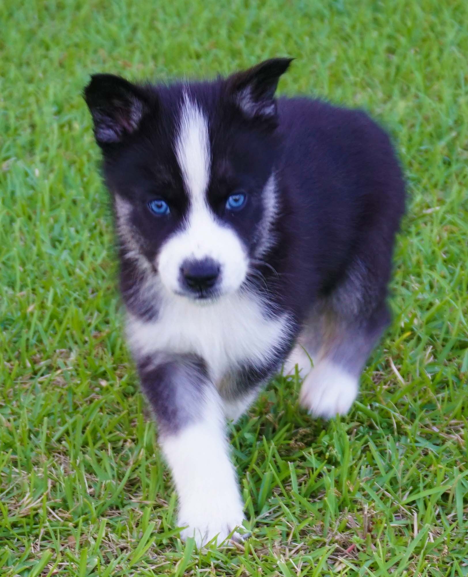 Baxter – Male Siberian Husky Puppies. Baxter is a striking male Siberian Husky puppy with bright blue eyes and a lively, curious personality. Full of energy and intelligence, he thrives in active homes where he can explore, play, and be mentally challenged. Baxter is well-socialized, healthy, and loves attention, making him the perfect companion for families or individuals who enjoy outdoor activities and fun-filled days with a loyal furry friend.