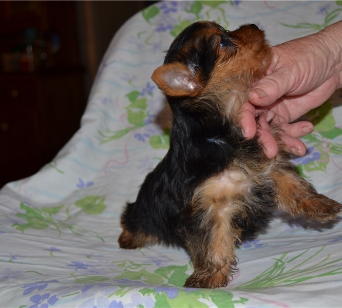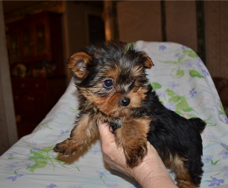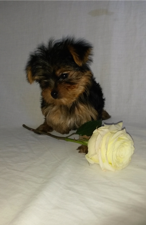 Copper – Energetic Teacup Yorkie Puppy. This handsome male teacup Yorkshire Terrier is a true little charmer. With his silky coat, bright eyes, and confident personality, he loves attention and enjoys being close to his people. Despite his tiny size, he has a big heart and a playful spirit.